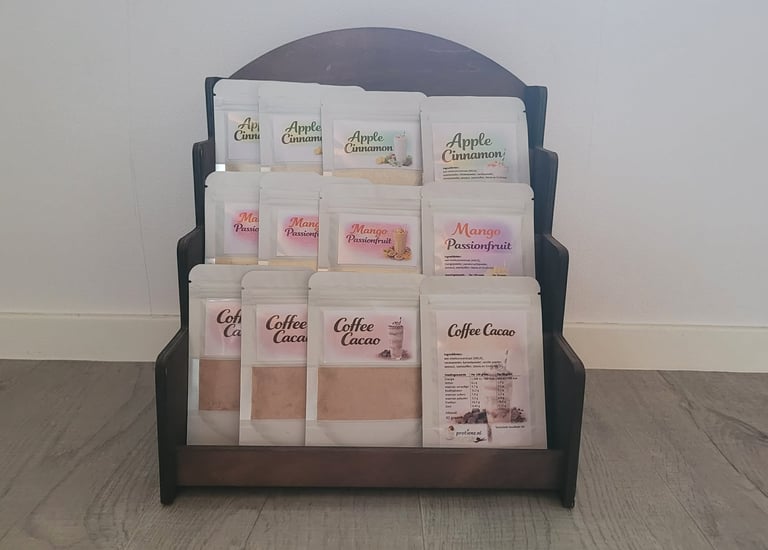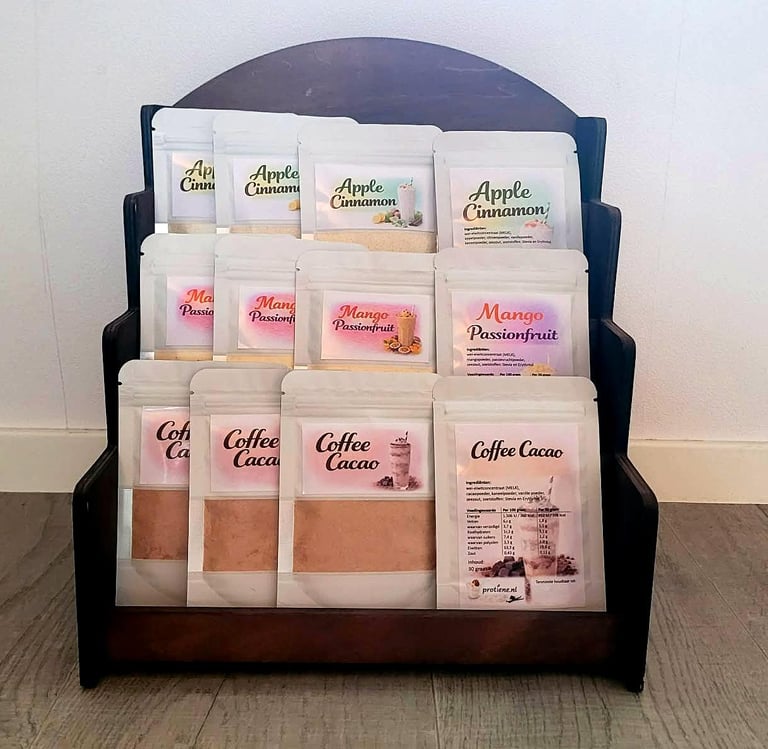 Samenstellen van unieke eiwit- en fruitpoedermixen.