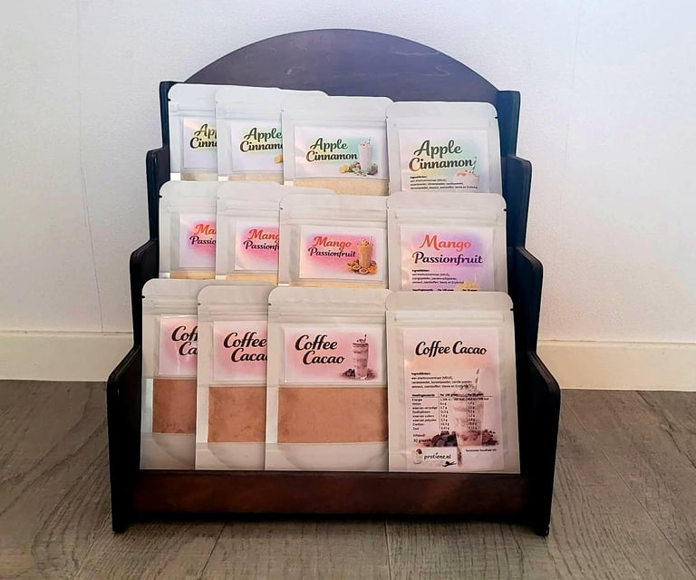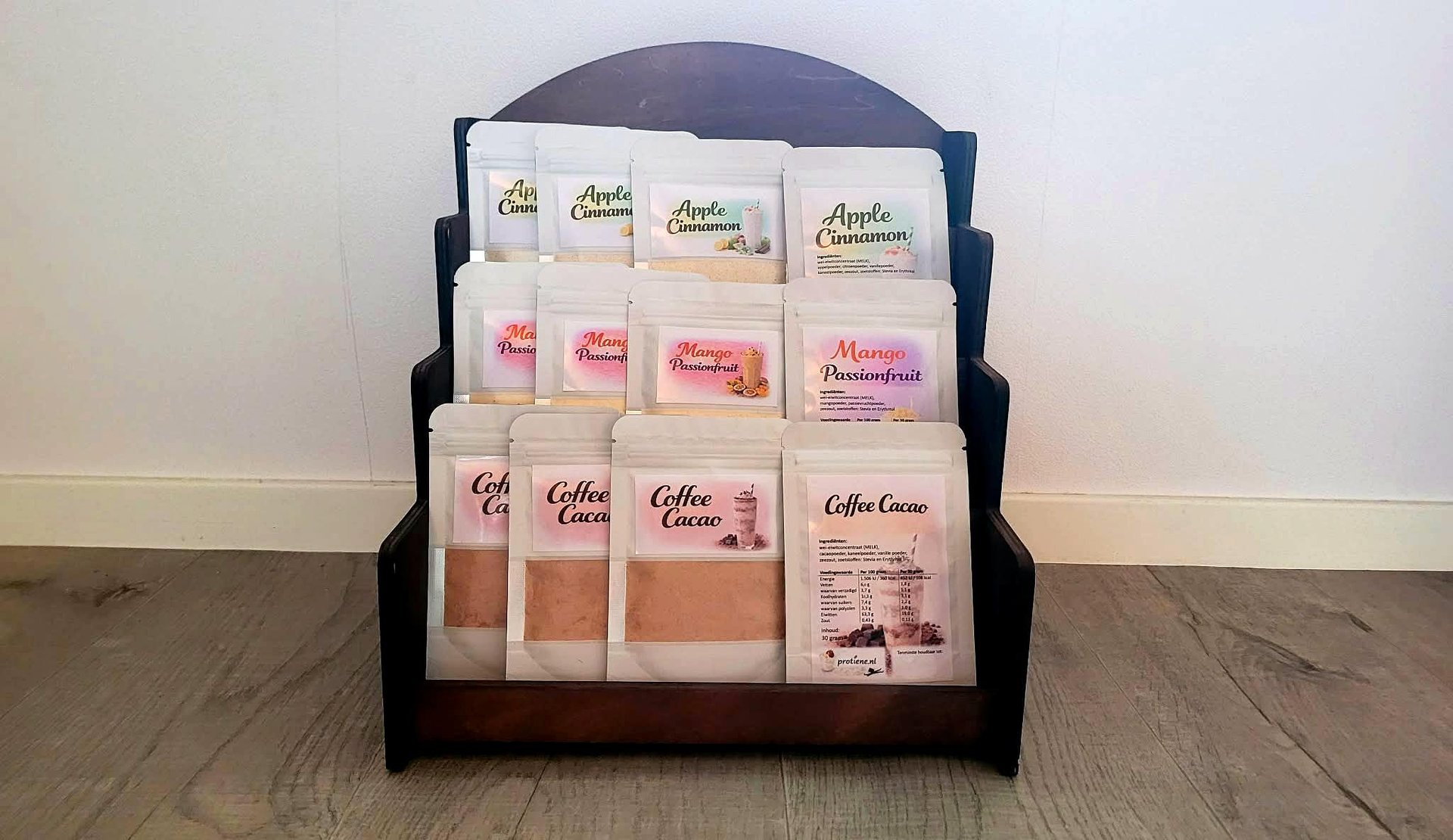 Samenstellen van unieke eiwit- en fruitpoedermixen.